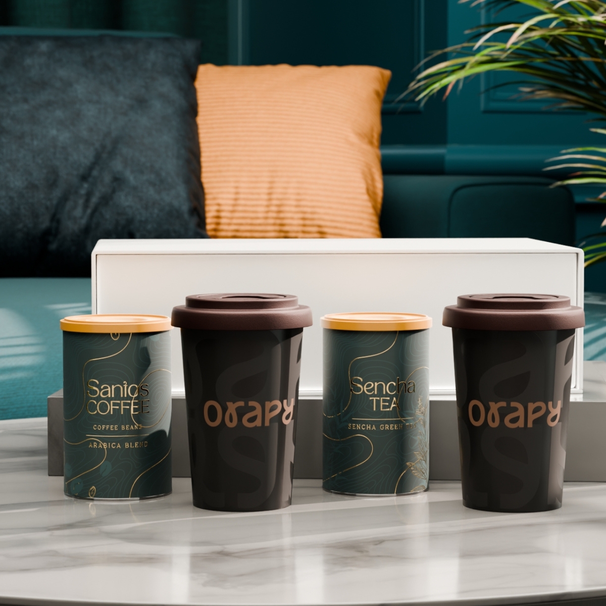Das Set mit den mobilen Freedom-Bechern verbindet Mobilität mit subtilem Branding. Im Inneren befinden sich außerdem ausgewählter „Santos Coffee“ und „Sencha Tea“ in eleganten Dosen. Das Ganze ist in einer exklusiven, schneeweißen Verpackung mit Magnetverschluss verpackt. Der Deckel ist in folgenden Farben erhältlich: Weiß, Orange 021C, Cool Gray 7, Rot 200C, Marineblau 294C, Braun 4695C, Schwarz, Rosa 4064C, Blau 2144C, Eukalyptus 5493C, Desert Sand 2310C.